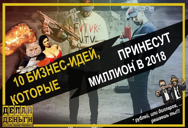 Еще не решили чем заняться в 2018? Ребята из Делай Деньги расписали 10 идей, которые способны принести миллион рублей. Чек-листы и руководства по каждой идее прилагаются.